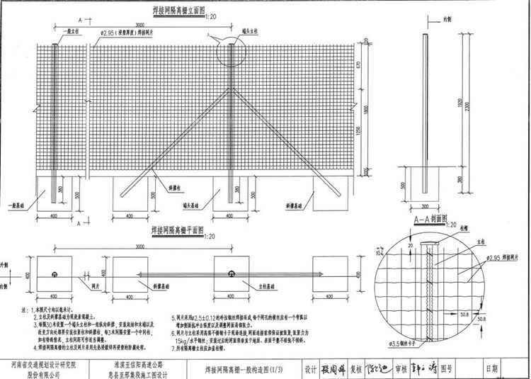 2.焊接網(wǎng)隔離柵立柱及斜撐基礎為現(xiàn)澆素混凝土。