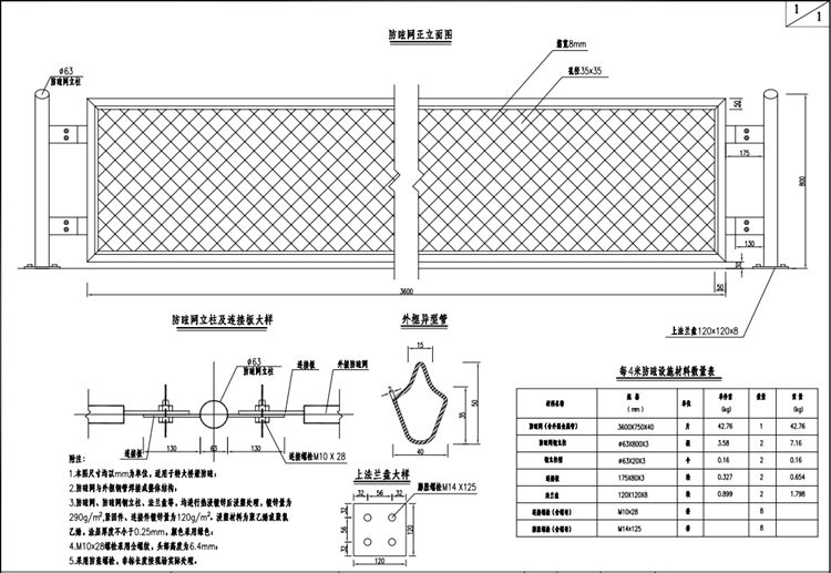 1.本圖高速公路防眩網(wǎng)尺寸均以mm為單位,適用于特大橋梁防眩。