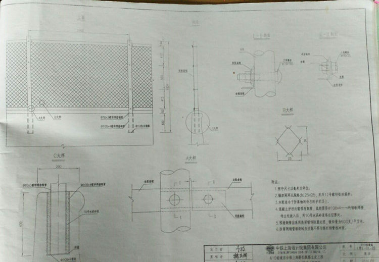 3、本圖鐵路立交編織網(wǎng)防落網(wǎng)設(shè)在砼護欄項上。