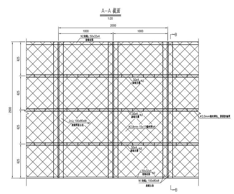 4. N5圓鋼與N2角鋼采用焊接處理, N4鋼絲網(wǎng)掛在N5圓筋上。