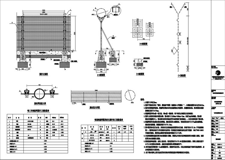 1.本圖鋼筋網(wǎng)圍界尺寸單位為mm。