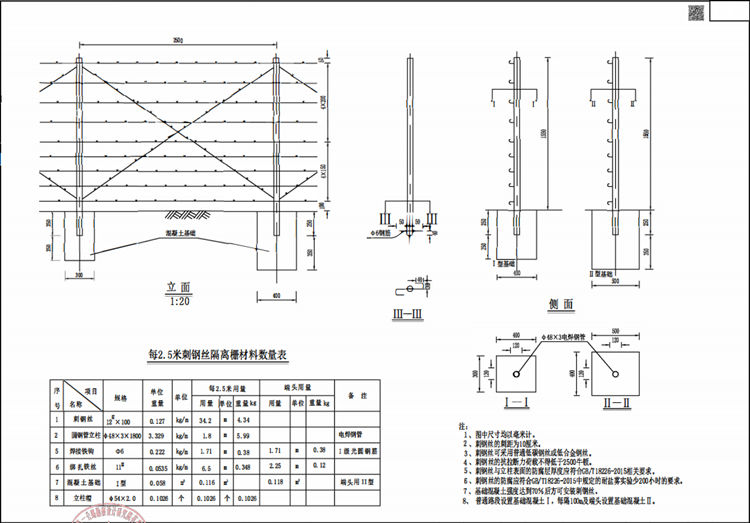 7、基礎(chǔ)混凝土強(qiáng)度達(dá)到70%后方可安裝刺鋼絲.