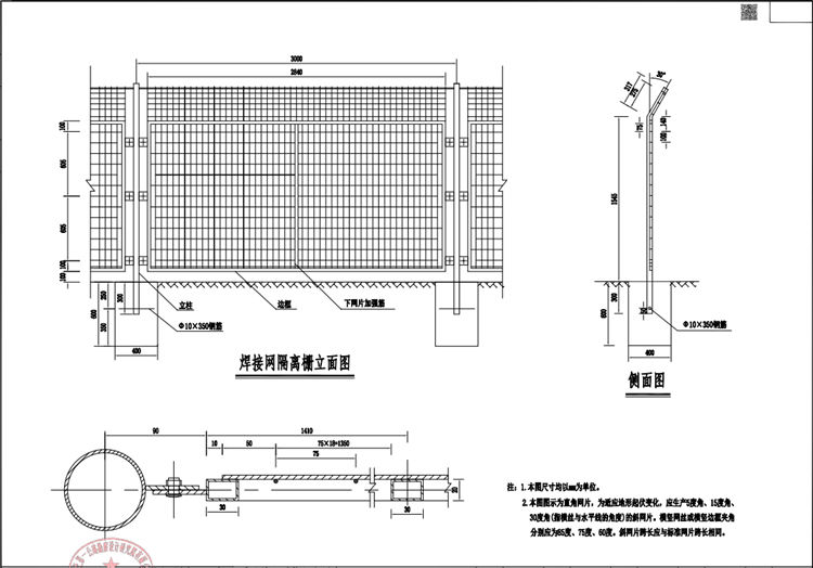 焊接網(wǎng)隔離柵(熱浸鍍鋅+浸塑)立柱間距3m,所有鋼構(gòu)件均采用 Q235 鋼,其力學(xué)性能應(yīng)符合相關(guān)規(guī)范要求;施焊前要求各單體矯正平直并去除毛刺;焊接部位要求過度圓滑、 無夾渣、虛焊、氣孔等焊接缺陷;構(gòu)件組焊成型后需進(jìn)行整體矯正,整形后的整體曲翹度不得大于7mm;鋼管鋼板等鍍鋅量為 275g/㎡,緊固件、連接件為 120g/㎡。涂塑層厚度應(yīng)大于0.25mm。鋼絲>0.15mm。具體參見《公路交通工程鋼構(gòu)件防腐蝕技術(shù)條件》(GB∕T18226-2015)。