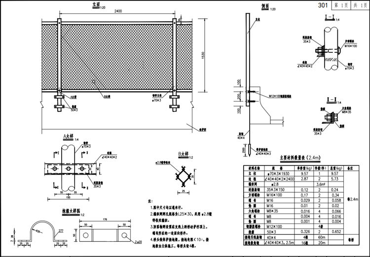 3.防落物網(wǎng)設(shè)置在支線.上跨橋砼護(hù)欄頂上,螺母所在的一邊面向橋外。