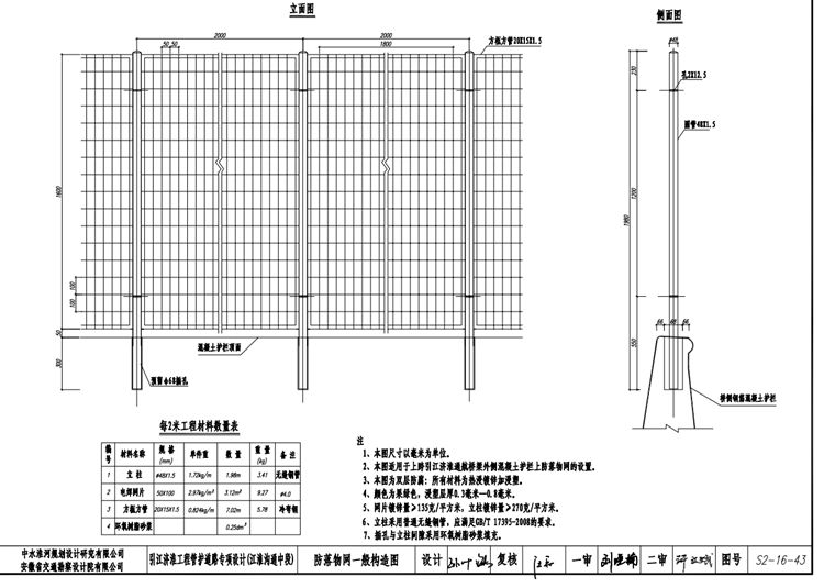 2、本圖適用于上跨引江濟淮通航橋梁外惻混凝土護欄上防落物網(wǎng)的設置。
