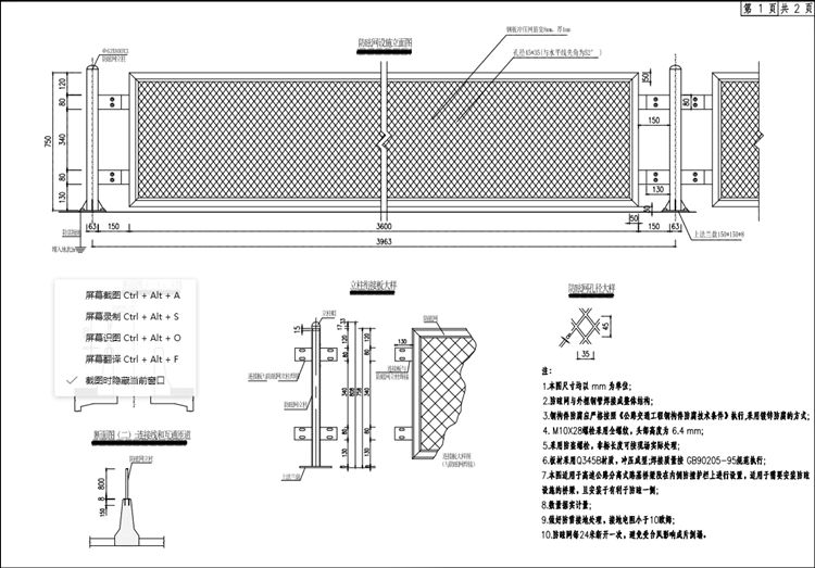 三、高速公路Gs-N-Gw防眩設(shè)施防眩網(wǎng)技術(shù)要求及施工注意事項