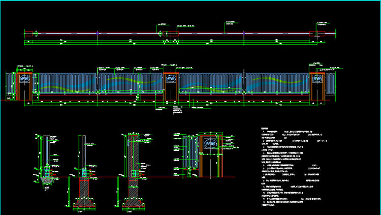 4、圍墻所有金屬構(gòu)件焊接部分焊縫均應(yīng)挫平,均須做防腐防銹處理,露明的金屬構(gòu)件均采用整體聚酯漆靜電噴涂。各金屬構(gòu)件表面應(yīng)光滑、平直、無(wú)毛刺。無(wú)鐵銹、無(wú)油污及附著在構(gòu)件表面的雜物。圍墻格柵及構(gòu)件均為乳白色聚酯漆靜電噴涂,格柵按圖噴涂藍(lán)綠色飄帶造型。