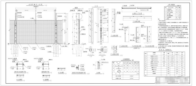 2、本圖適用于封閉高度2.3m特殊區(qū)段,結(jié)構(gòu)由鋼筋混凝土立柱、金屬網(wǎng)片與刺絲滾籠組成。剌絲滾籠圖紙參通用參考圖。