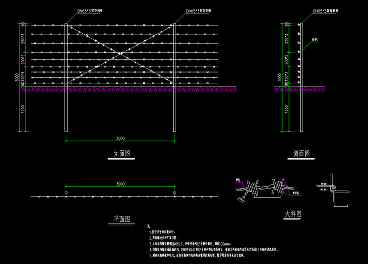 1. 圖中刺鐵絲隔離柵尺寸均以毫米計(jì)。