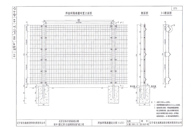 北京至哈爾濱高速公路焊接網(wǎng)隔離柵設(shè)計要求: