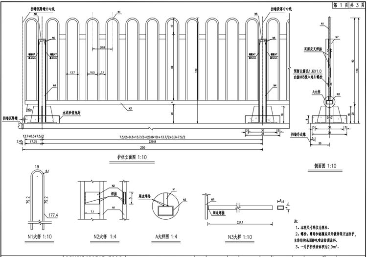 2、非機動車道改建工程人行道欄桿螺栓、螺母和墊圈應采用鍍鋅等方法防護,主體結構采用靜電噴涂防腐涂料。