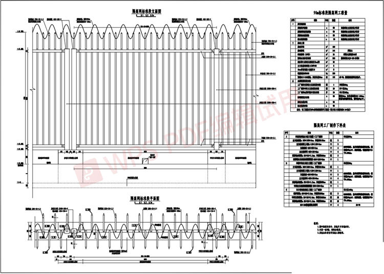 9、主立柱、欄柵網(wǎng)片及刺繩均為工廠制作,現(xiàn)場安裝。