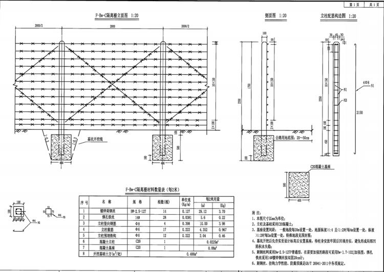 2、立柱及基礎(chǔ)采用C20混凝土。