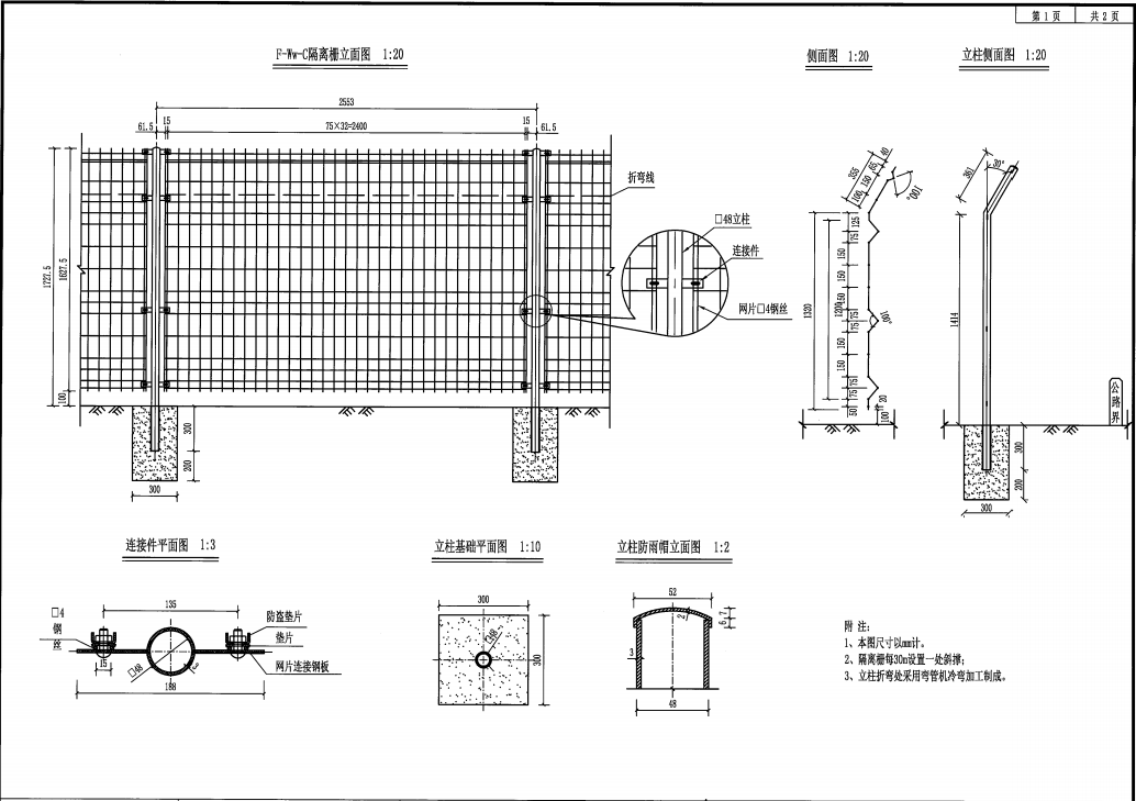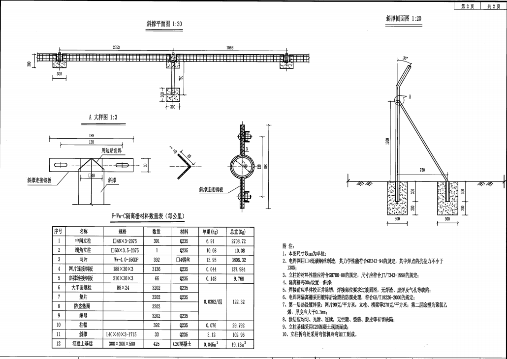 4、隔離柵每30m設置一斜撐。