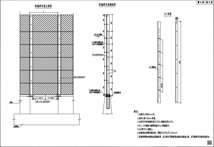 6.防拋網(wǎng)采用鍍鋅鋼絲網(wǎng),網(wǎng)眼尺寸不大于0.25平方厘米。