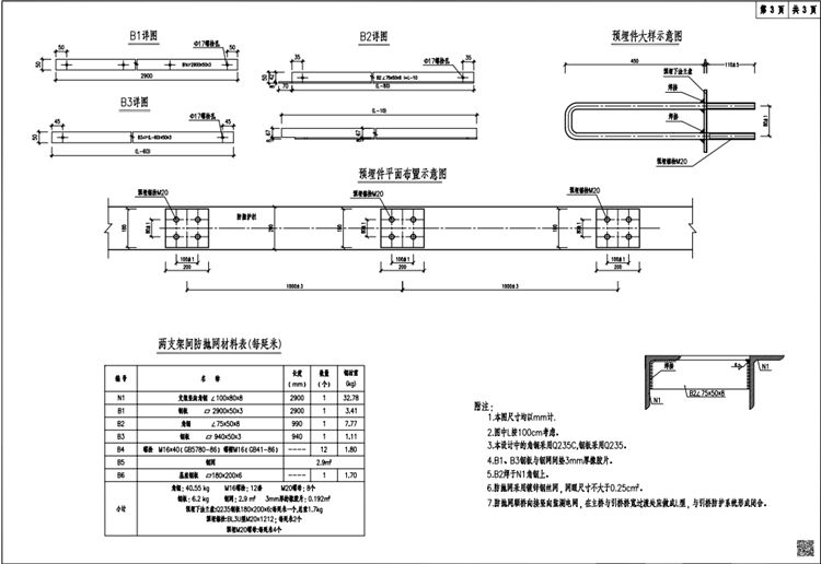 4.B1、B3鋼板與鋼網(wǎng)間墊3mm厚橡膠片。