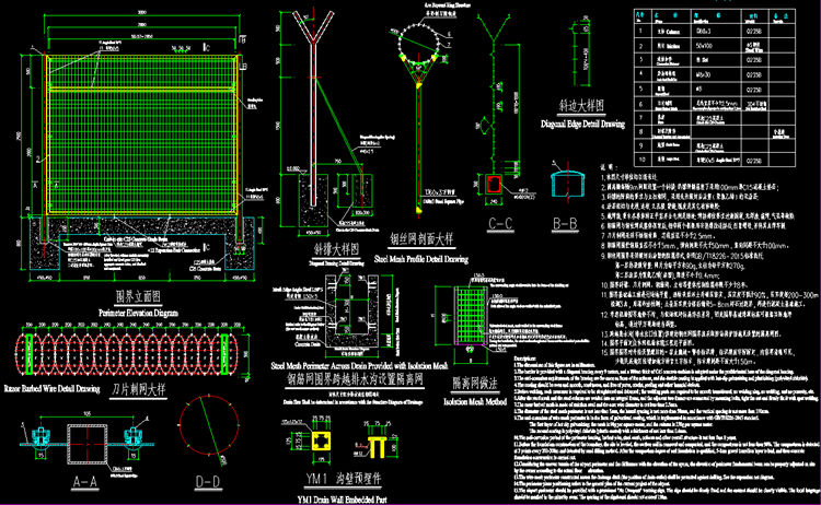 10.圍界斜撐、刀片刺網(wǎng)、鋼筋網(wǎng)、立柱等整體結(jié)構(gòu)防腐年限不少于8年。