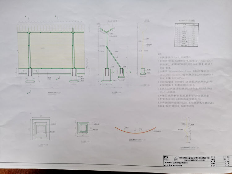 3.立柱截面尺寸為80mmx60mmx2.5mm,斜撐和延伸臂截面尺寸為50mmx50mmx2.0mm,鋼筋網(wǎng)片網(wǎng)格尺寸為100mmx50mm (中到中),刺刀圈直徑不小于600mm。