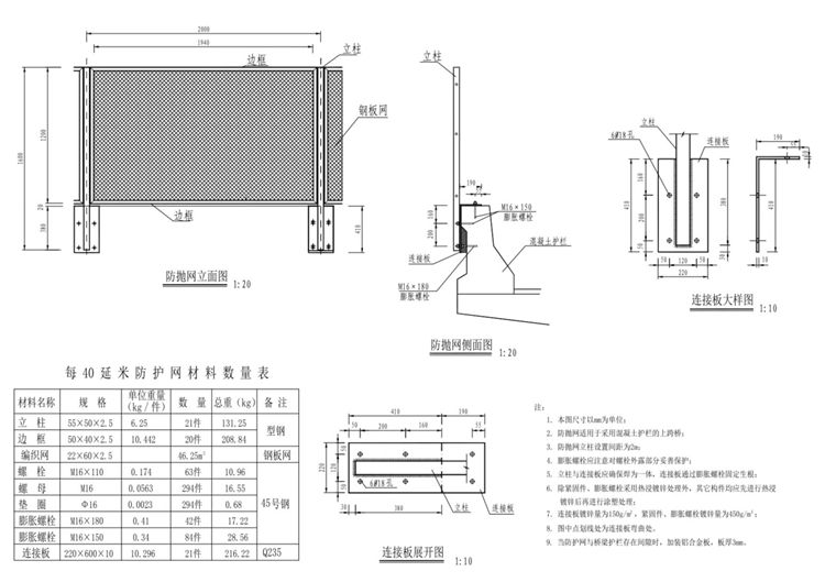2.防拋網(wǎng)適用于采用混凝土護(hù)欄的上跨橋。