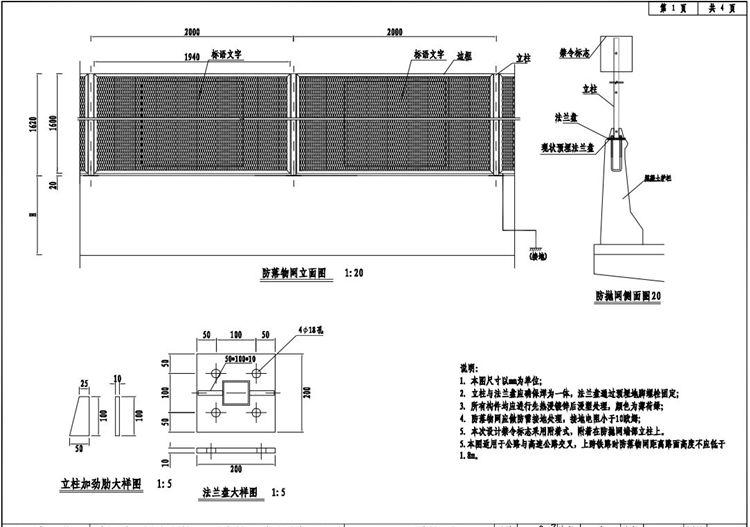 5.本次設(shè)計禁令標(biāo)志采用附著式,附著在防拋網(wǎng)端部立柱上。