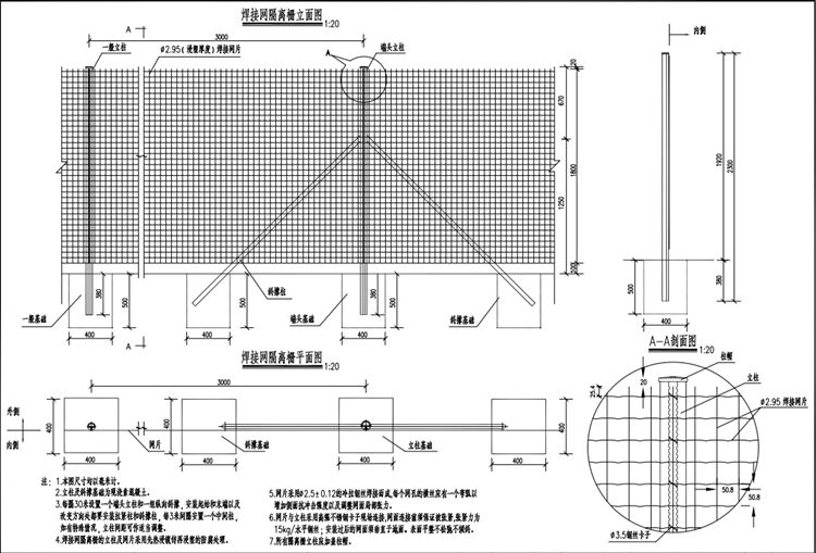 2.焊接網(wǎng)隔離柵立柱及斜撐基礎(chǔ)為現(xiàn)澆素混凝土。