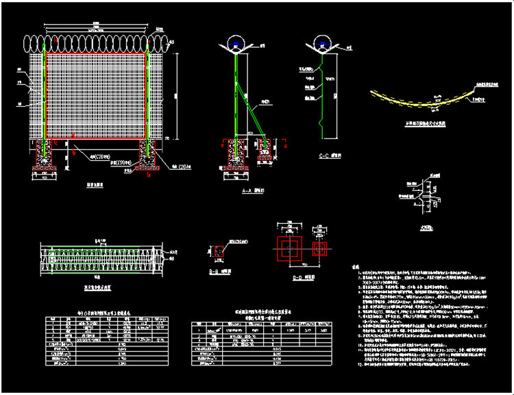 12、圖中為按標(biāo)準(zhǔn)設(shè)計(jì)的圍欄網(wǎng)大樣圖,實(shí)際施工時(shí)亦可通過(guò)招標(biāo)采用符合標(biāo)準(zhǔn)要求的廠家成品。