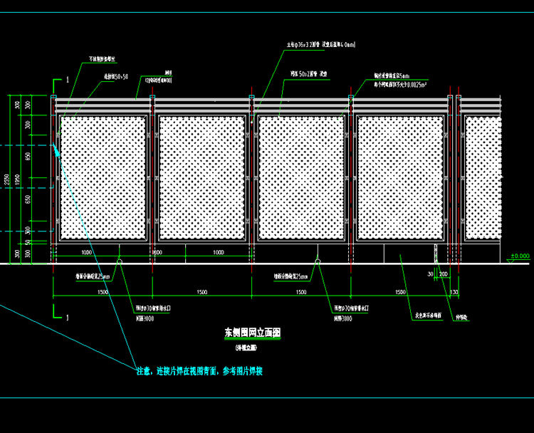2、熱鍍鋅浸塑隔離網(wǎng)絕對標高:圍墻定位坐標和絕對標高詳見總平面施工圖。