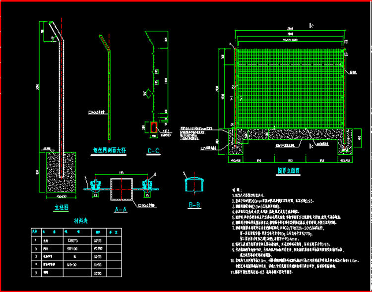 1.本圖鋼筋網(wǎng)圍界尺寸單位均以毫米計(jì)。