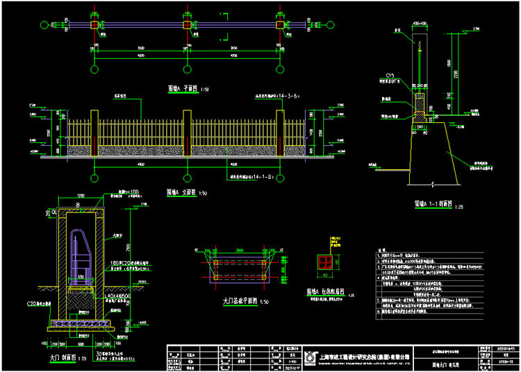 1. 本圖鑄鐵透視圍墻尺寸以mm計,標高以米計。
