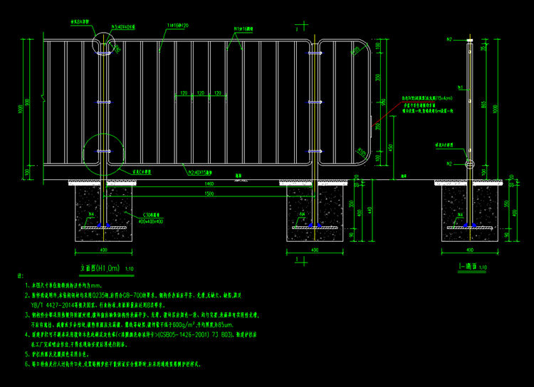 2、除特殊說(shuō)明外,車(chē)行道護(hù)欄結(jié)構(gòu)鋼材均采用Q235鋼,應(yīng)符合GB-700的要求。鋼構(gòu)件表面應(yīng)平齊、光滑,無(wú)缺欠、缺陷,滿(mǎn)足YB/T 4427-2014等相關(guān)國(guó)家、 行業(yè)標(biāo)準(zhǔn),表面質(zhì)量應(yīng)達(dá)到B類(lèi)要求。