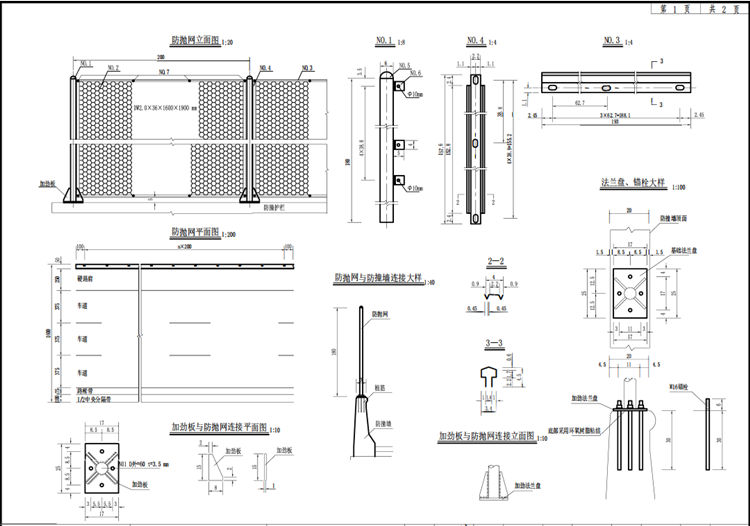 6、鋼板網(wǎng)防護(hù)網(wǎng)基礎(chǔ)加勁法蘭盤與立柱在工廠里制作為成品,現(xiàn)場采用螺母安裝。