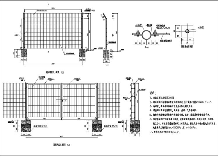 7.鋼絲網(wǎng)圍欄圖中所注尺寸單位均以mm計。