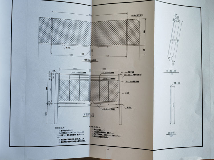 2.草原網(wǎng)圍欄安裝:鋼絞線或電焊與圍欄立柱固定,刺鋼絲材質(zhì)與網(wǎng)面相同。
