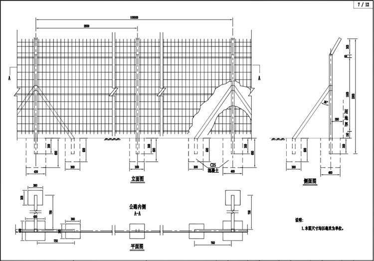 1.本圖鋼絲網(wǎng)隔離網(wǎng)尺寸均以毫米為單位。