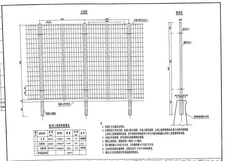 2、本圖防落物網(wǎng)適用于車行天橋、匝道上跨主線橋、主線上跨匝道橋、 主線上跨等級路的分離立交橋外側(cè)混凝土護欄上防落物網(wǎng)的設置。其中括弧內(nèi)數(shù)值適用于車行天橋外側(cè)混凝土護欄上防落物網(wǎng)的設置。