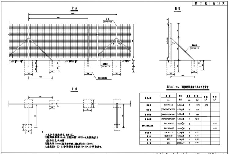 4.護欄圍欄立柱選用56X50X2.5冷彎等邊槽鋼,斜撐選用49X50X2.5冷彎等邊槽鋼。
