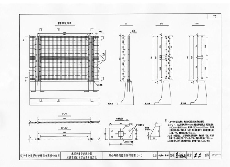 1.圖中尺寸均以亳米計,本圖僅適用跨公路橋梁防落網(wǎng)。