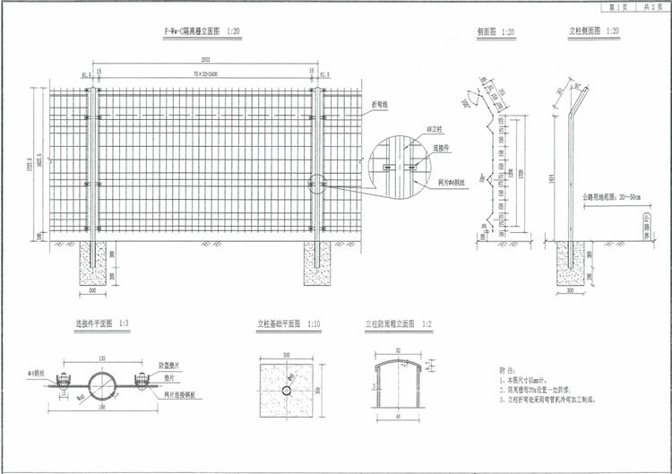 1、本圖F-Ww-C焊接網(wǎng)隔離柵尺寸以mm為單位。