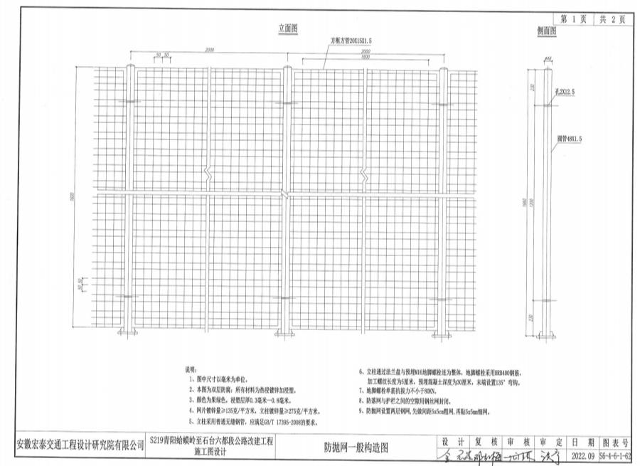 4、防拋網(wǎng)設(shè)置在主跨外側(cè)防撞護(hù)欄上,全橋共計設(shè)置防拋網(wǎng)280米,合計140片。