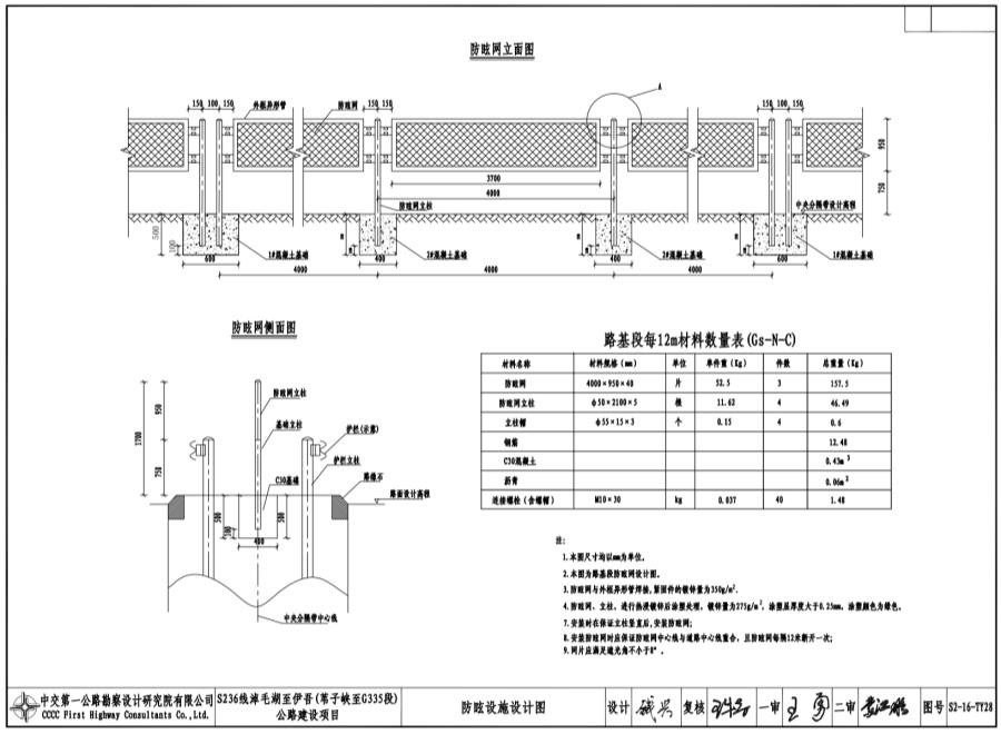 2.本圖為路基段防眩網(wǎng)設計圖。