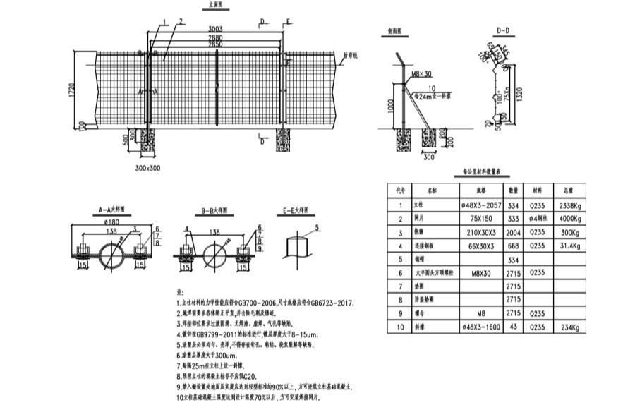 1.立柱材料的力學(xué)性能應(yīng)符合GB700-2006寸規(guī)格應(yīng)符合GB6723-2017。