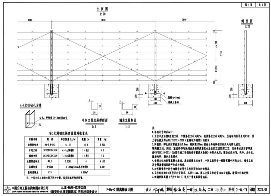 4.每根立柱均設(shè)置混凝土基礎(chǔ)?;A(chǔ)回填土應(yīng)夯實。中間立柱用于一般隔離柵中間段立柱。端角立柱