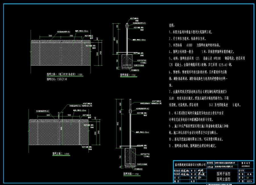 4、圍網(wǎng)立柱間距一般為3米,具體按照圍網(wǎng)布置圖確定。