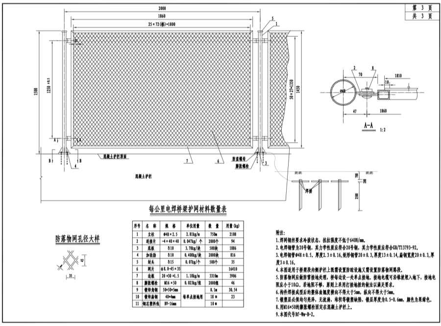 4.本圖適用于橋梁段內(nèi)側(cè)護欄上即需設(shè)置防眩設(shè)施又需設(shè)置防落物網(wǎng)路段。