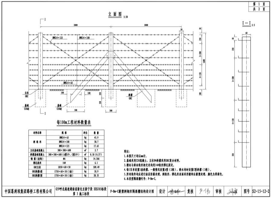 2.基礎(chǔ)采用C20混凝土,立柱和斜撐采用GRC復(fù)合材料。