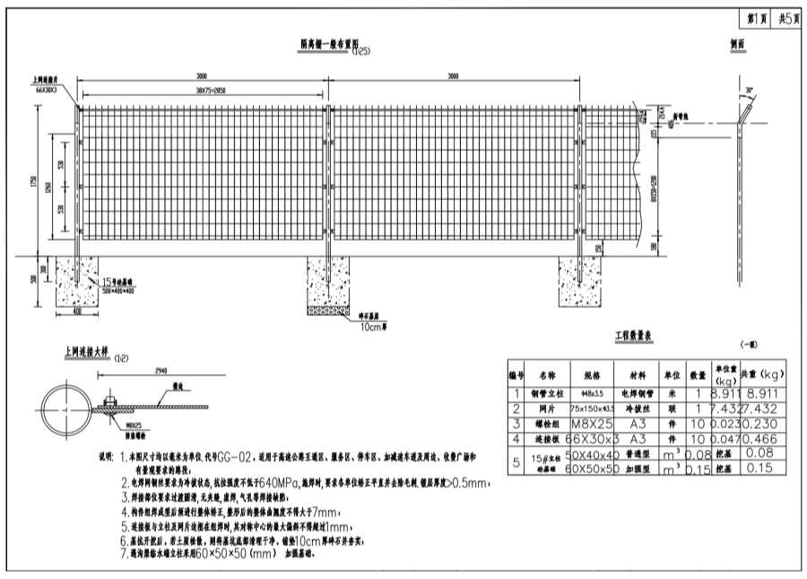 7.每隔200米或遇到溝渠,臨水端立柱采用60X60X50(mm)加強基礎。