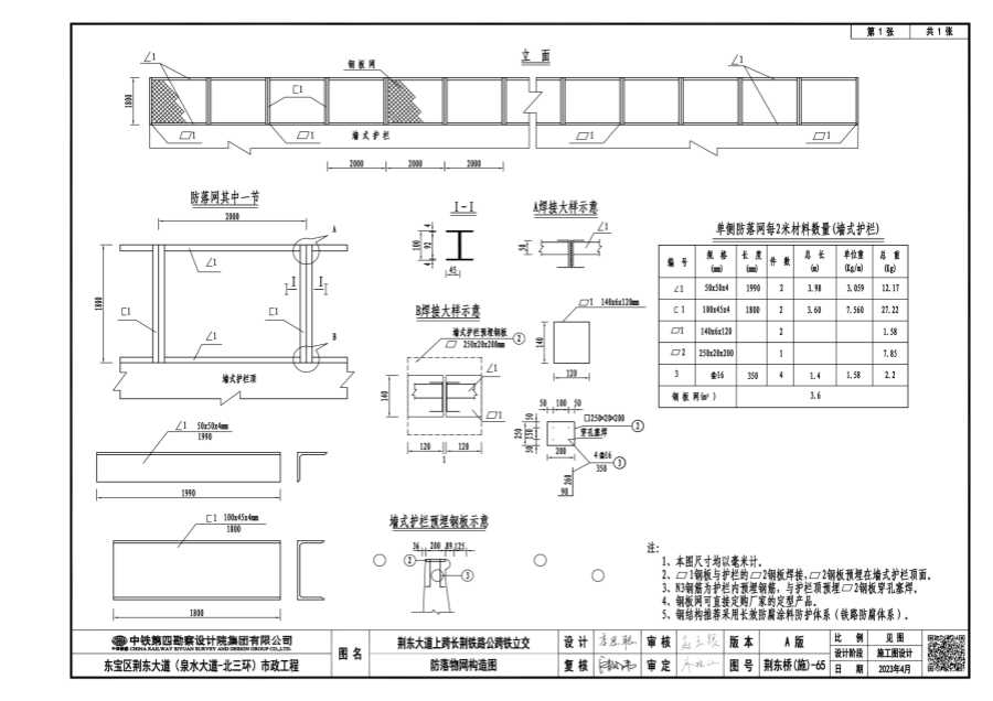 全橋范圍橋面兩側(cè)均設(shè)置防拋網(wǎng),避免橋上拋物,不利于鐵路安全。防拋網(wǎng)設(shè)置在外側(cè)HA級(jí)防撞墻墻頂上,頂面高出人行道不小于2.5m。防拋網(wǎng)格柵采用2m一段的金屬網(wǎng)、直徑不小于6mm的鋼絲,網(wǎng)眼不大于2.5cm,鋼絲網(wǎng)表面采用熱鍍鋅+浸塑處理,熱鍍鋅量 270g/㎡,浸塑厚度0.8~1.2mm,浸塑顏色為墨綠色。防拋網(wǎng)上設(shè)置“高壓危險(xiǎn)”警示標(biāo)志。
