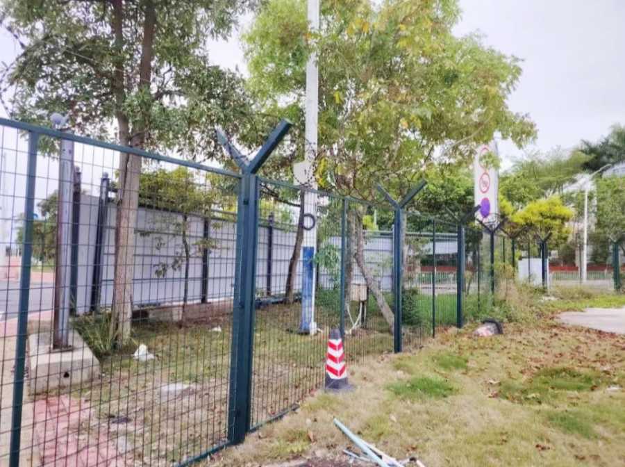 2、立柱:高1.8米,60*60*3mm立柱,邊框30*30*1.5mm,鋼板網(wǎng)60*110*4.0mm,上方安裝倒刺,總高約2米。