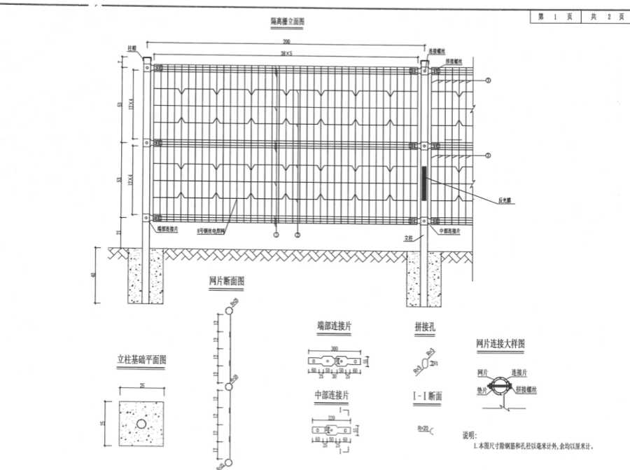 2.數(shù)量表中除鋼絲以兩米計(jì)外,其他數(shù)量為單根立柱數(shù)量,在同一結(jié)構(gòu)段內(nèi)應(yīng)增加一根立柱。且增加四件端部連接片,減少四件中部連接片。
