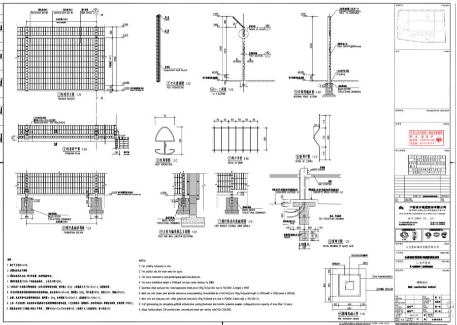 9.圍墻基礎(chǔ)采用C30混凝土現(xiàn)澆(可預(yù)制),預(yù)留150x150x350立柱埋入孔,立柱埋入后二次澆筑固定,埋入深度300。
